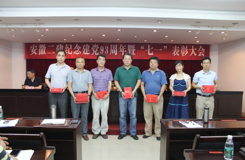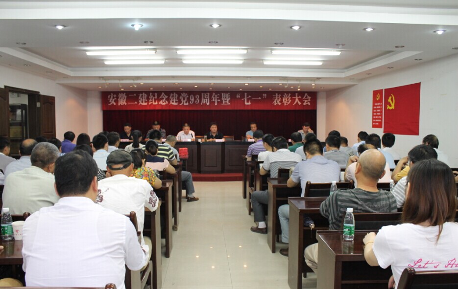 7月1日下午,安徽二建黨委在三樓會議室召開了紀念建黨93周年暨“七一”表彰會。公司兩級領導班子成員、受表彰的先進基層黨組織代表、優秀共產黨員、優秀共產黨員示范崗、部分在崗黨員和“我與安徽建工夢”征文獲獎代表共70多人參加會議。