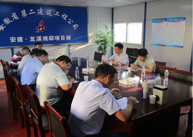 在隨后召開的現(xiàn)場(chǎng)工作會(huì)上,王厚良副總經(jīng)理對(duì)安建·龍溪山莊工程質(zhì)量和目前所取得的成績(jī)給予了充分肯定,對(duì)項(xiàng)目近期工作提出四點(diǎn)要求,一是要高標(biāo)準(zhǔn)、嚴(yán)要求,抓好現(xiàn)場(chǎng)安全文明施工和標(biāo)準(zhǔn)化施工,提高安徽建工集團(tuán)在當(dāng)?shù)氐挠绊懥Γ欢且叨戎匾暟踩|(zhì)量,確保安全無事故,質(zhì)量無缺陷;三是要強(qiáng)化目標(biāo)責(zé)任制,充分調(diào)動(dòng)全體員工的積極性;四是要加強(qiáng)人才培養(yǎng),對(duì)青年人,工作上要交真本領(lǐng),業(yè)務(wù)上要經(jīng)常開展技能培訓(xùn)。