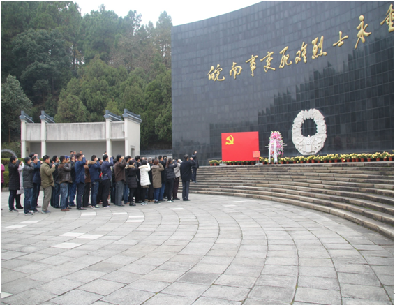 初冬的皖南山區(qū)并無(wú)太多蕭瑟之感,目之所及,綿延起伏的群山上仍是郁郁蔥蔥,新四軍軍部舊址就位于這綠水青山之間。黨員同志們懷著敬仰的心情先后參觀了新四軍軍部舊址、新四軍軍部大會(huì)堂舊址、皖南事變烈士陵園,并敬獻(xiàn)花籃與挽聯(lián)。通過(guò)講解員的解說(shuō),大家了解了新四軍的建立發(fā)展壯大過(guò)程、軍部主要機(jī)關(guān)設(shè)置、新四軍將領(lǐng)及女兵的英勇抗日的事跡,以及震驚中外的“皖南事變”的經(jīng)過(guò)。豐富而詳實(shí)的館藏史料,讓黨員們重溫了中國(guó)共產(chǎn)黨領(lǐng)導(dǎo)中國(guó)人民取得革命成功的艱辛歷程;同時(shí)也深刻認(rèn)識(shí)到只有在中國(guó)共產(chǎn)黨領(lǐng)導(dǎo)下,中國(guó)的革命事業(yè)才會(huì)取得不斷勝利。
