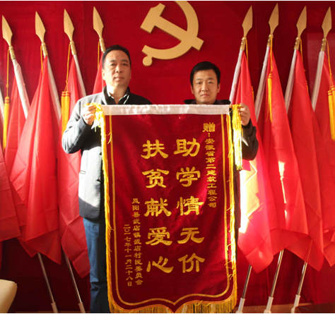 近日,安徽二建三分公司收到了鳳陽縣武店鎮(zhèn)武店村民委員會送來的錦旗,感謝安徽二建對當(dāng)?shù)匾幻毨Т髮W(xué)生的資助。