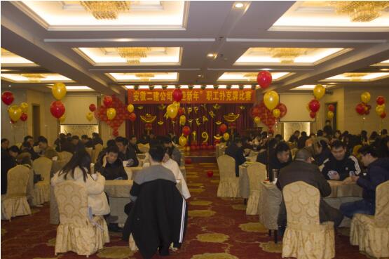 為迎接2019年新春佳節,進一步豐富職工文化生活,增強企業凝聚力,1月23日上午,安徽二建公司在隆崗大酒店三樓會議室舉辦“迎新春”職工撲克比賽。