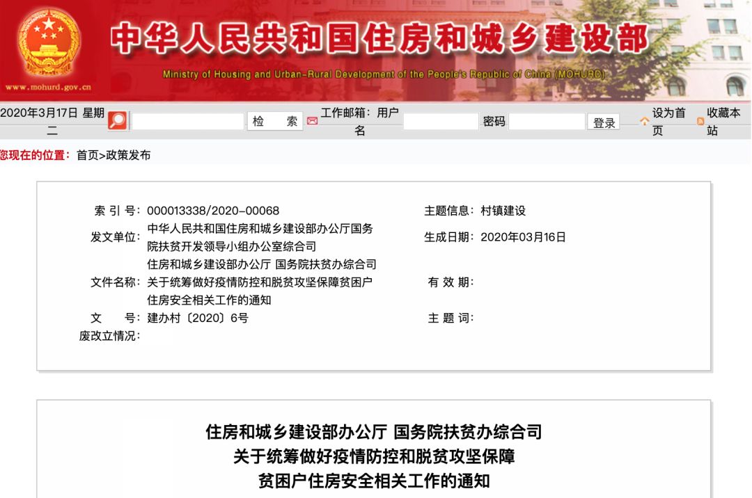 為貫徹落實習(xí)近平總書記在決戰(zhàn)決勝脫貧攻堅座談會及統(tǒng)籌推進(jìn)新冠肺炎疫情防控和經(jīng)濟(jì)社會發(fā)展工作部署會上的重要講話精神,深入落實黨中央、國務(wù)院脫貧攻堅決策部署,確保如期實現(xiàn)貧困戶住房安全有保障目標(biāo)任務(wù),現(xiàn)就統(tǒng)籌抓好新冠肺炎疫情防控和脫貧攻堅農(nóng)村危房改造相關(guān)工作通知如下。