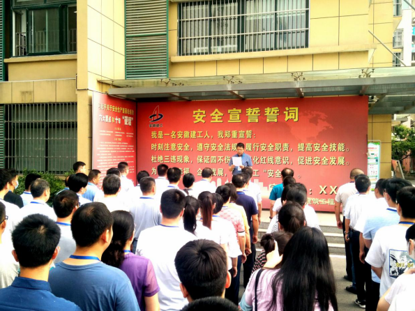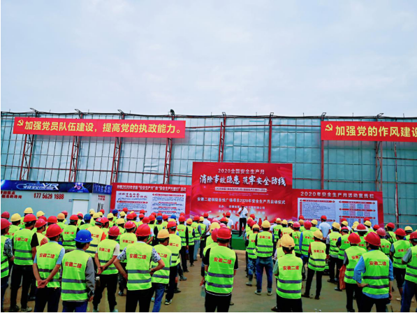 6月1日上午,安徽二建公司舉行了“安全生產(chǎn)月”啟動(dòng)儀式,公司領(lǐng)導(dǎo)、機(jī)關(guān)全體職工100余人參加。總經(jīng)理陸勤斌作了講話,指出安全生產(chǎn)工作的重要性和“安全生產(chǎn)月”活動(dòng)的意義,宣布2020年“安全生產(chǎn)月”活動(dòng)正式啟動(dòng)。全體職工在安全總監(jiān)曹建的帶領(lǐng)下進(jìn)行了安全宣誓,隨后,大家在印有“安全生產(chǎn)月”主題“消除事故隱患,筑牢安全防線”的橫幅上簽名。公司所屬各單位、各項(xiàng)目部同步開展了啟動(dòng)儀式。