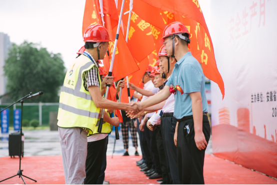 之后,公司工程管理部副主任丁光啟宣讀了2020年勞動競賽方案;總經理助理、一分公司經理崔書斌代表勞動競賽參賽單位進行了宣誓;參加啟動儀式的領導向參賽單位進行授旗。最后,陸勤斌宣布安徽二建公司“戰疫情、搶工期、保目標、促超產”勞動競賽正式開始。