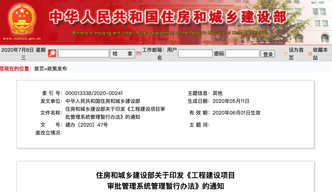 近日,住房和城鄉(xiāng)建設部印發(fā)《工程建設項目審批管理系統(tǒng)管理暫行辦法》。