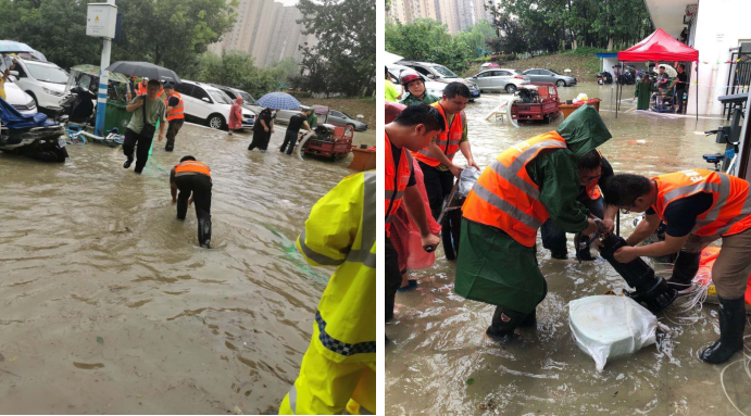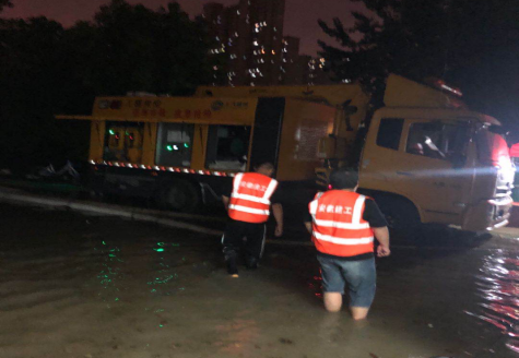 7月18日,合肥遭受77年一遇單日最大降雨。藍(lán)天公寓和大興鎮(zhèn)興泰苑出現(xiàn)內(nèi)澇,情況緊急,人民群眾生命財產(chǎn)安全遭受威脅,汛情就是戰(zhàn)斗令,二分公司接到指令,馬上組建30余人的抗洪突擊隊,緊急調(diào)運(yùn)大功率水泵2臺,配電箱2個,80米電線電纜,300米水管等防汛物資,20分鐘極速趕到抗洪前線。現(xiàn)場有的架設(shè)水泵、有的鋪設(shè)電纜、有的配合抽水排澇,分工明確、爭分奪秒。經(jīng)過數(shù)小時的緊急救援,至凌晨,災(zāi)情得到有效控制。奮戰(zhàn)了8個小時的志愿者們才撤出前線。
