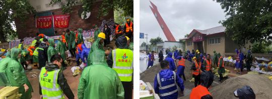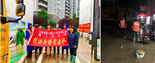 為積極響應瑤海區政府和公司抗洪搶險號召,7月18日二分公司第一時間成立兩支抗洪搶險突擊隊,準備雨衣、雨鞋、鐵鍬、水泵、配電箱、電纜等物資20分鐘極速趕到抗洪前線,代表公司參加瑤海區住建局統一調度抗洪搶險工作,救災現場有的架設水泵、有的鋪設電纜、有的配合抽水排澇,分工明確、爭分奪秒,力爭將群眾的損失降到最低。