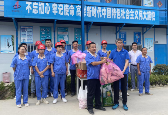 7月31日下午,烈日炎炎,暑氣蒸人,公司副總經(jīng)理余華恒、工會(huì)女工主任王俊一行赴文一·塘溪津門、文一·春風(fēng)里項(xiàng)目送清涼,看望和慰問(wèn)奮戰(zhàn)在施工一線項(xiàng)目管理人員。