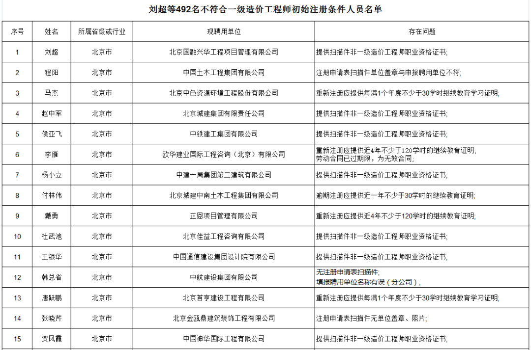 點(diǎn)擊圖片查看不符合一級造價工程師初始注冊條件人員及存在問題完整名單