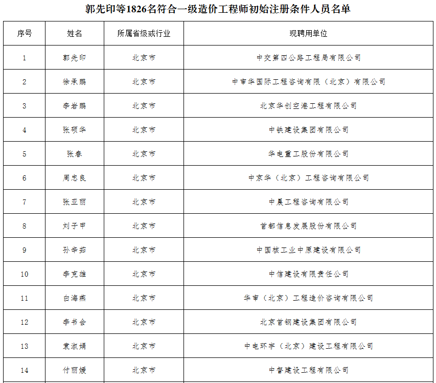 點(diǎn)擊圖片查看符合一級造價工程師初始注冊條件人員完整名單