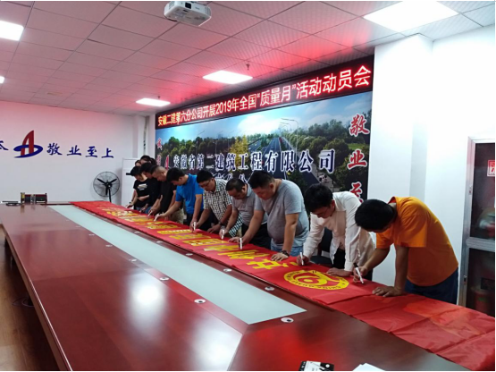 為認(rèn)真落實(shí)安徽建工集團(tuán)股份有限公司關(guān)于開展2019年“質(zhì)量月”活動(dòng)的通知,9月3日,第六分公司召開2019年“質(zhì)量月”活動(dòng)專題會(huì)進(jìn)行宣貫,組織職工進(jìn)行橫幅簽名活動(dòng),以“共創(chuàng)中國(guó)質(zhì)量 建設(shè)質(zhì)量強(qiáng)國(guó)”為主題,大力營(yíng)造“人人重視高質(zhì)量,人人創(chuàng)造高質(zhì)量,人人享受高質(zhì)量”的良好氛圍,進(jìn)一步規(guī)范質(zhì)量安全行為,提高質(zhì)量安全管理水平,全面提升項(xiàng)目管理水平,要求項(xiàng)目部按照“質(zhì)量月”活動(dòng)內(nèi)容,結(jié)合項(xiàng)目實(shí)際,精心安排、周密部署,以“質(zhì)量月”活動(dòng)為契機(jī),加大項(xiàng)目質(zhì)量宣傳力度,進(jìn)一步提高全員質(zhì)量意識(shí),開展質(zhì)量示范創(chuàng)建,創(chuàng)建公司質(zhì)量品牌,牢固樹立全心全意為用戶提供優(yōu)質(zhì)服務(wù)的安徽建工一流企業(yè)現(xiàn)象。