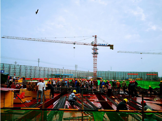 嚴陣以待,披堅執銳。據了解,雖然項目工期緊、任務重,但項目部始終踐行安徽建工人“誠信為本 敬業至上”的核心價值觀。黨支部發揮戰斗堡壘作用,在黨團員中廣泛開展“當先鋒、爭先進,黨、團員在行動”等活動,聚力生產、攻堅克難,以黨建添活力,充分發揮黨團員的先鋒模范作用;每晚八點準時召開生產例會,做好各方面工作銜接,做到統籌安排、忙而不亂;嚴格要求各分包班組時刻遵守相關規定、有序組織工人、材料按照計劃進場,保質保量施工,確保項目按時交付。