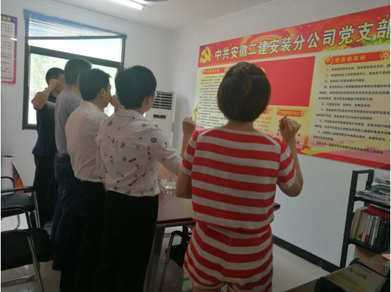 不忘初心,重溫入黨誓詞。分公司6名黨員及入黨積極分子重溫入黨誓詞,通過莊嚴的儀式,提醒黨員干部時刻謹記黨旗下的承諾,踐行黨章要求。