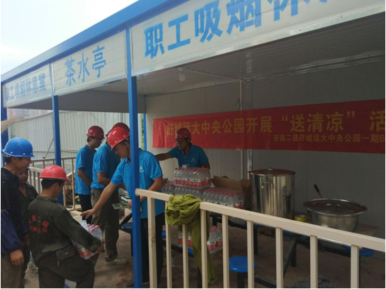 連日來氣溫居高不下,舒城遠(yuǎn)大中央公園項(xiàng)目部于6月27日下午在施工現(xiàn)場(chǎng)開展了為工友“送清涼”活動(dòng),表達(dá)了項(xiàng)目部對(duì)奮戰(zhàn)在高溫酷暑下員工的關(guān)懷與慰問。
