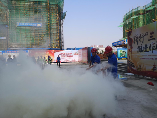 啟動(dòng)儀式上,一分公司副經(jīng)理崔俊對(duì)本次安全生產(chǎn)月活動(dòng)主題、活動(dòng)主要內(nèi)容進(jìn)行了宣貫,并對(duì)后期安全生產(chǎn)工作進(jìn)行安排部署,隨后在安全負(fù)責(zé)人的帶領(lǐng)下莊嚴(yán)宣誓,并有序地在宣誓標(biāo)語橫幅上簽名。項(xiàng)目人員還觀摩學(xué)習(xí)了滅火器的正確使用方法以及對(duì)因高空墜物受傷人員的緊急處理演示。