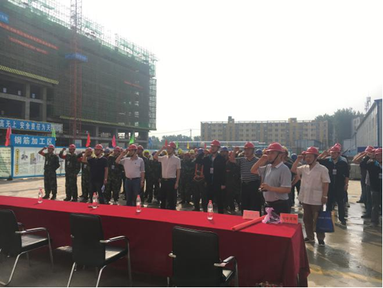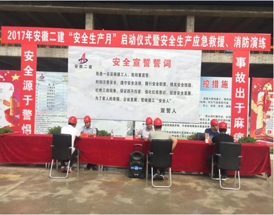 2017年6月8日上午,由安徽二建承建的太和發(fā)藝時尚文化園公共服務(wù)中心項目開展2017年“安全生產(chǎn)月”啟動儀式暨安全生產(chǎn)應(yīng)急救援、消防演練活動,正式拉開了以“全面落實企業(yè)安全生產(chǎn)主體責(zé)任”為主題的安全生產(chǎn)月活動序幕。公司副總經(jīng)理葉和永,安全管理部、工程管理部、保衛(wèi)部、太和PPP項目負責(zé)人、班組長、一線作業(yè)施工人員等百余人參加了此次活動。