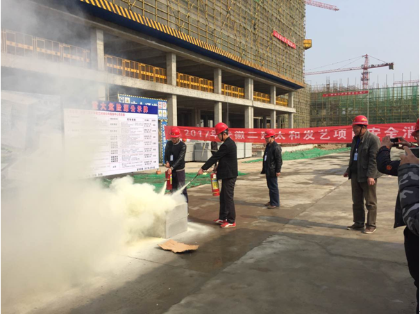 本次演練假想點(diǎn)為鋼筋制作電焊焊接操作區(qū)工人的疏忽,導(dǎo)致附近一些易燃物品著火。演練中操作人員以最快速度拿取滅火器撲滅小火,但火勢(shì)在瞬間已無法控制,他立即電話通知電焊班組長,并通知項(xiàng)目應(yīng)急分隊(duì)消防人員。應(yīng)急分隊(duì)義務(wù)消防隊(duì)員到位后立即打開滅火器,進(jìn)行滅火。十分鐘后火勢(shì)得到控制。