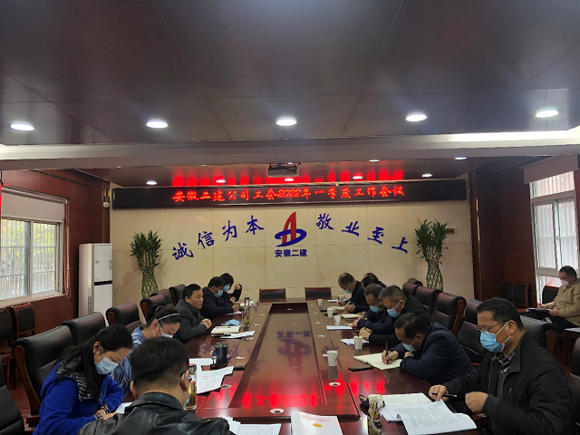 3月25日上午,安徽二建公司工會2022年一季度工作會議在公司一樓會議室召開。公司黨委副書記、董事、工會主席王軍出席會議并講話,工會副主席、女工委主任王俊主持會議,公司工會全體人員、所屬各單位工會主席和綜合辦負責工會工作人員參會。