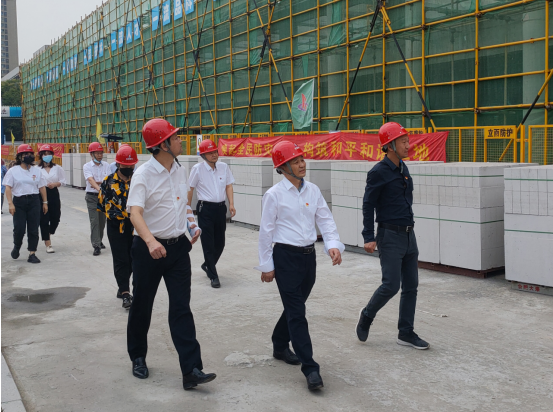王軍一行首先深入施工現(xiàn)場,詳細查看了項目現(xiàn)場安全文明創(chuàng)建、工程質(zhì)量、樣板展示、施工進度等情況,查閱了黨群工作資料,并到辦公區(qū)、生活區(qū)全面了解職工的工作生活環(huán)境。隨后,在聽取了項目黨支部書記“三號聯(lián)創(chuàng)”的工作匯報后,驗收組對項目創(chuàng)建工作取得的成績給予了肯定,同時對項目創(chuàng)建過程中不足之處提出了意見和建議。檢查組一行一致認為項目“三號聯(lián)創(chuàng)”達到公司標準,通過驗收。