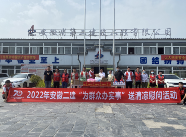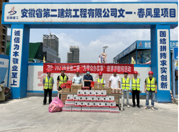 在肥東石塘鎮火龍社區安置點項目,葉和永為項目職工送上了夏季防暑藥品、飲料、花露水、毛巾等慰問品,叮囑他們要做好疫情防控形勢下的高溫作業和高溫天氣下的勞動保護。